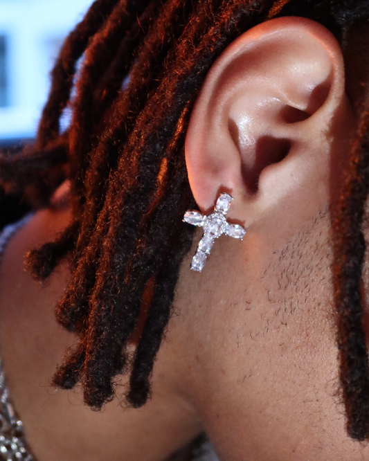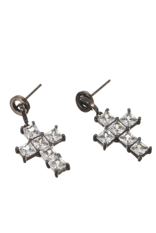 ICE CUBE CROSS EARRINGS